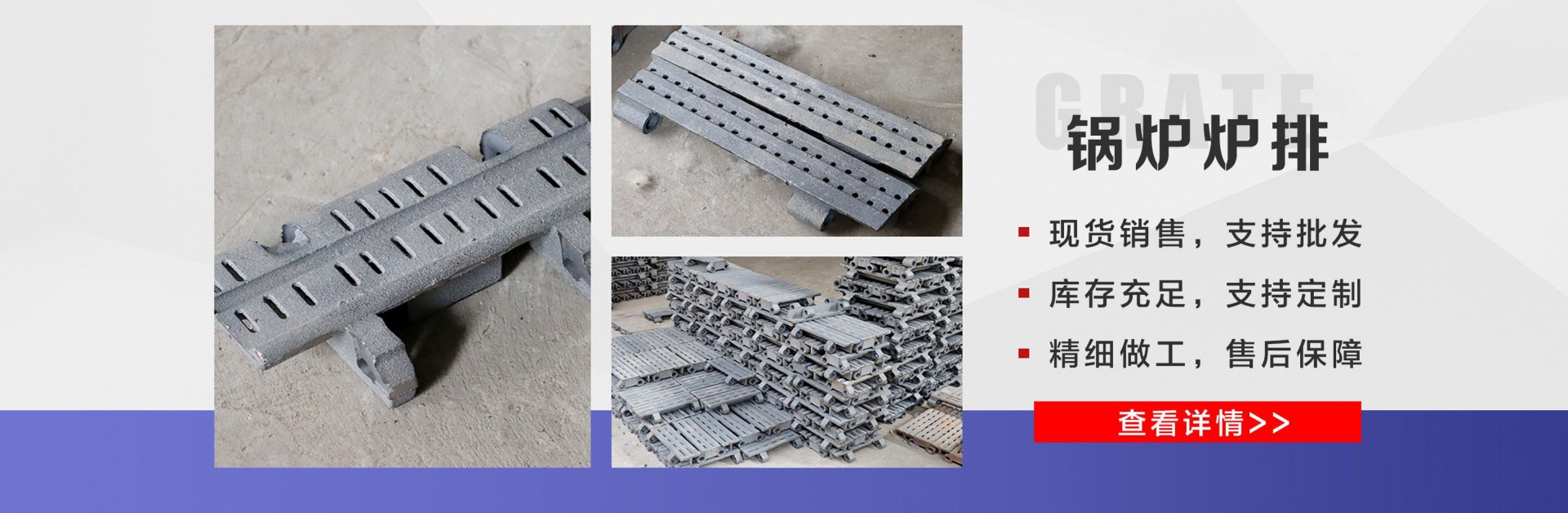 麗新機械配件廠位于“江北水城”之稱的聊城。公司主要銷售:鍋爐爐門,爐篦子,爐排片,鍋爐爐排,省煤器管,鍋爐風帽,鍋爐配件等多種產品,公司堅持以市場為導向、以誠實守信為經營理念,竭誠為廣大客戶服務! 爐排是鍋爐或工業爐中堆置固體燃料并使之有效燃燒的部件。整個爐排主要包括框架和爐排片兩個部分。爐排片通常用鑄鐵制造,組裝后片與片之間保持必要的通風縫隙,并且往往還在爐排下邊設置可以調節風量的分隔的通風室,以便空氣通過縫隙進入燃料層燃燒。燒盡后的灰渣用人工或機械方法排出。爐排有固定式、移動式、往復式、振動式和下飼式等類型?! ″仩t爐排操作實現了機械化,減輕了司爐工的勞動強度。快裝出廠,到使用現場后,裝接閥門儀表,鼓、引風機、煙風管道、省煤器、除塵器、出渣機。上煤機及水電路等即可運行,且具有起動生火快等特點?! 」緫{借豐富的規格品種,過硬的質量,合理的價格,完善的服務,不斷地受到新老用戶及業內人士的肯定和信任,我們本著及用戶之所及,想用戶之所想的服務宗旨不斷地拼搏,進取,在此對多年來支持我們的各行各業的新老朋友表示由衷的感謝! 我公司的理念:“誠信、合作、互利、雙贏”!以最大的努力滿足客戶的需求。...